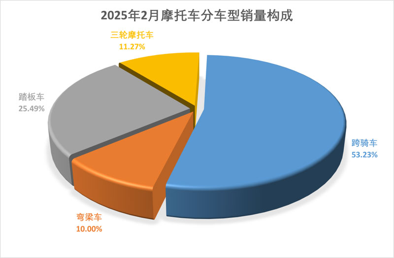 2月,從車型明細來看,三大車型中,跨騎車產銷66.57萬輛和69.79萬輛,產銷量環比下降25.06%和17.17%,同比增長46.05%和47.62%;踏板車產銷35.74萬輛和36.82萬輛,產銷量環比下降7.14%和5.7%,同比增長50.77%和42.91%;彎梁車產銷13.49萬輛和12.95萬輛,產銷量環比下降8.66%和22.95%,產銷量同比增長52.67%和32.41%。